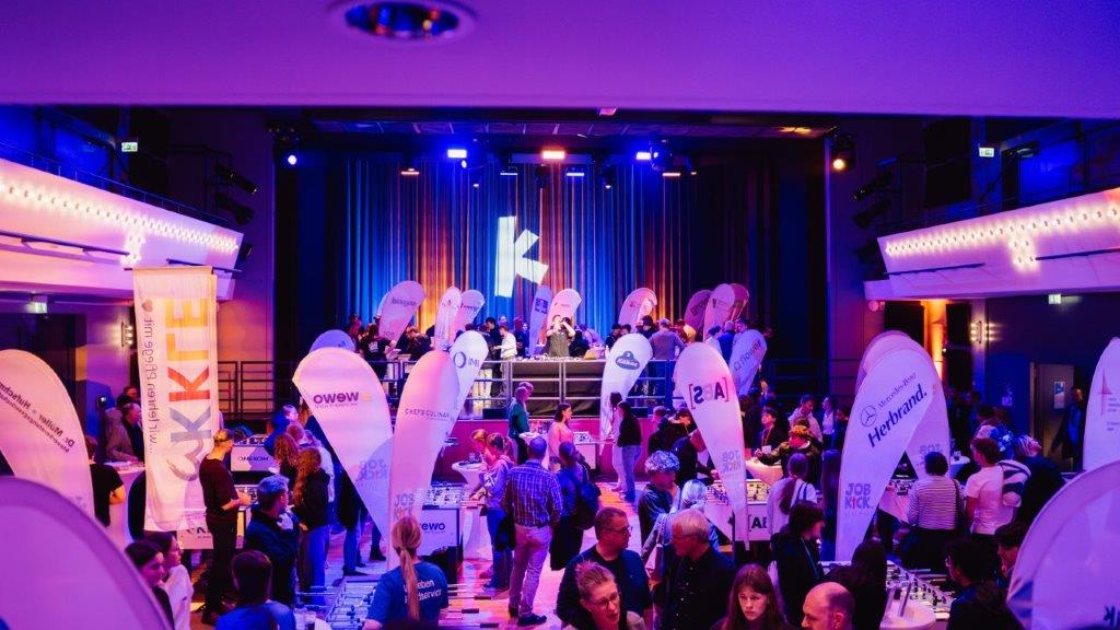 Jobmesse mal anders, das zog: Über 500 Ausbildungsplatzsuchende nutzten die Chance zum „Jobkick“. Das lag vor allem an der guten Kooperation mit der Gesamtschule Kevelaer, die mit ganzen Jahrgangsstufen zum Event erschien. Darüber hinaus besuchten Jugendliche mit ihren Eltern und ganze Cliquen von Schüler:innen aus Geldern oder Straelen an diesem Abend das Bühnenhaus der Wallfahrtsstadt Kevelaer. Auch Bildungsträger, Jobcenter und das Kommunale Integrationsmanagement waren mit ihren Ausbildungsplatzsuchenden vor Ort.